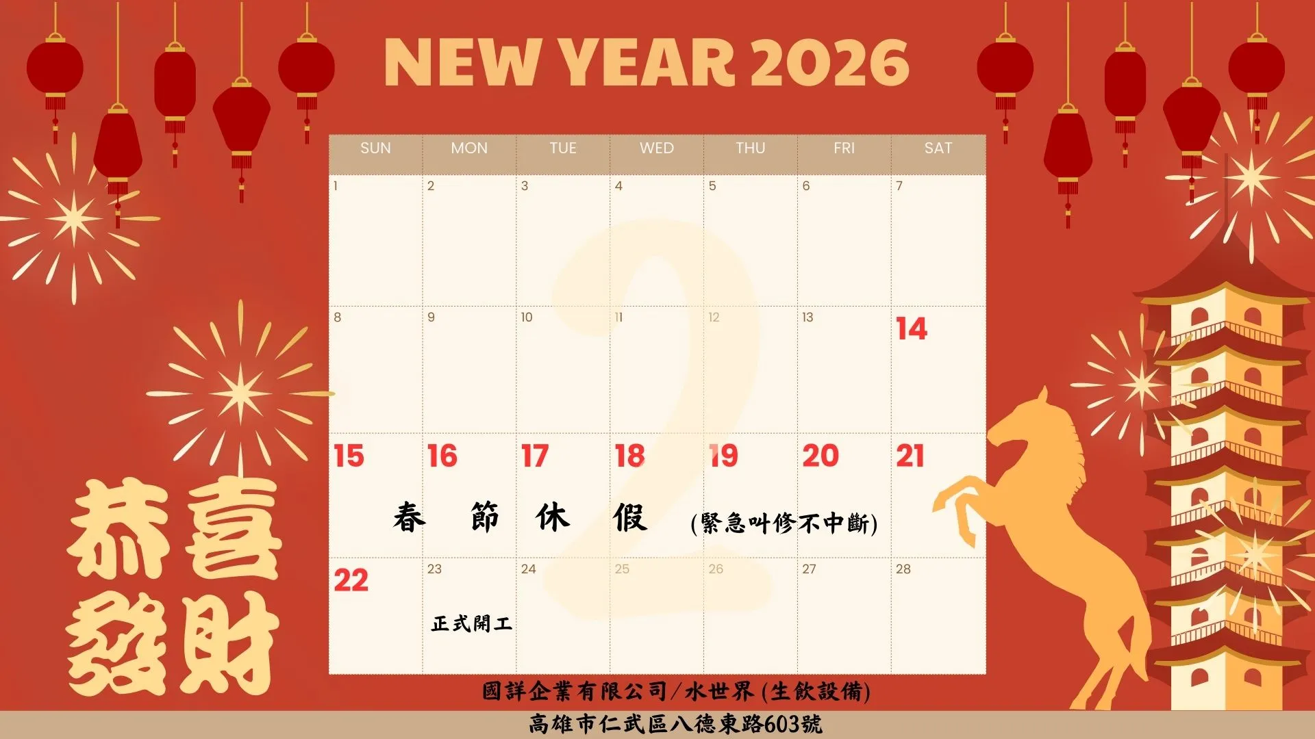 首頁 > 最新消息 > 最新資訊 > 祝各位~過年迎新春,馬年行大運